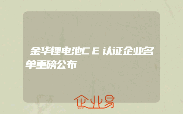 - 金华锂电池CE认证企业名单重磅公布