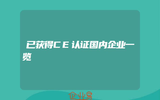 - 已获得CE认证国内企业一览
