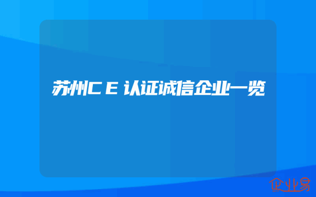 - 苏州CE认证诚信企业一览