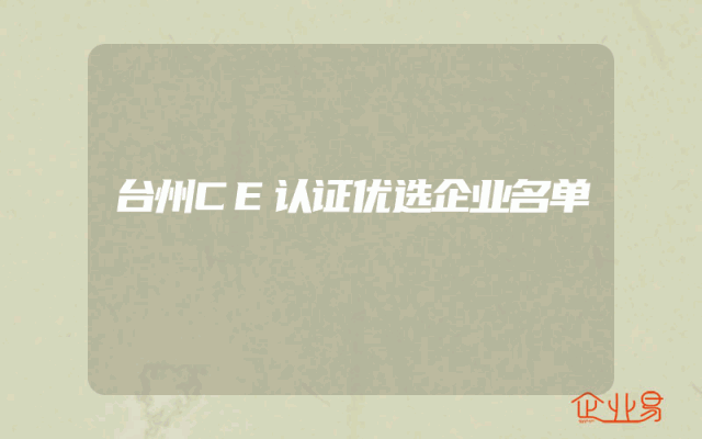 - 台州CE认证优选企业名单