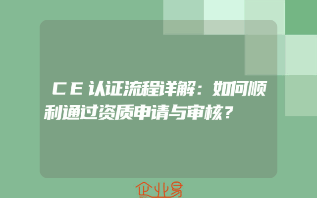 - CE认证流程详解:如何顺利通过资质申请与审核?