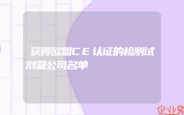 - 获得欧盟CE认证的检测试剂盒公司名单