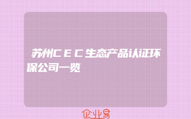 - 苏州CEC生态产品认证环保公司一览一、CEC生态产品认证概述随着环保理念的深入人心,越来越多的企业开始注重生态产品的认证工作。CEC生态产品认证作为一种重要的环保认证形式,在苏州市也得到了广泛应用。该认证不仅涉及到企业的生产过程和产品本身,