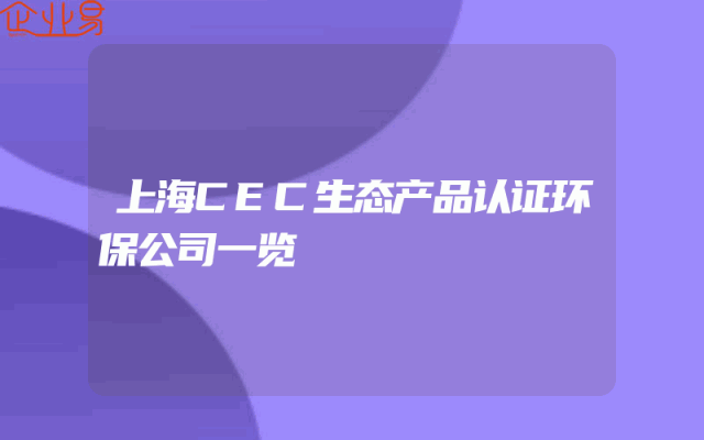 - 上海CEC生态产品认证环保公司一览一、CEC生态产品认证概述在上海,随着环境保护意识的不断提高,越来越多的企业开始重视生态产品的认证工作。CEC生态产品认证是衡量企业在环境保护、节能减排以及资源循环利用等方面努力的一个重要标准。认证