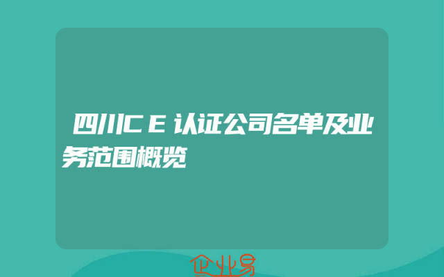 - 四川CE认证公司名单及业务范围概览一、CE认证概述在中国,CE认证已成为众多企业产品和服务进入欧洲市场的必备条件。四川地区作为中国经济的重要增长极,拥有众多专业的CE认证公司,为本地及国内外企业提供全方位的认证服务。二、主要CE认证公司名单