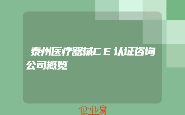 - 泰州医疗器械CE认证咨询公司概览一、公司背景及简介随着医疗器械行业的迅速发展,泰州医疗器械CE认证咨询公司应运而生,专注于为医疗器械企业提供全方位的CE认证咨询服务。该公司具备深厚的行业背景及丰富的实践经验,为医疗器械企业在产品出口欧盟市场