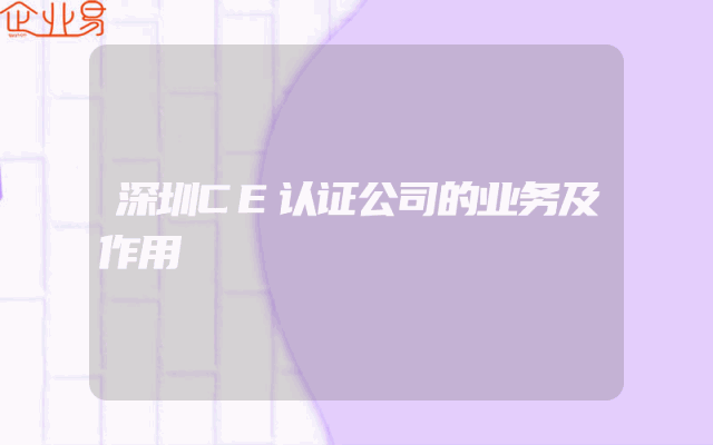 - 深圳CE认证公司业务及作用解析一、深圳CE认证公司的概述深圳作为中国高新技术产业的先锋城市,拥有众多专业的认证服务机构。其中,CE认证公司作为为企业提供认证服务的重要机构之一,扮演着至关重要的角色。CE认证是欧洲市场的一种强制性安全认证标志
