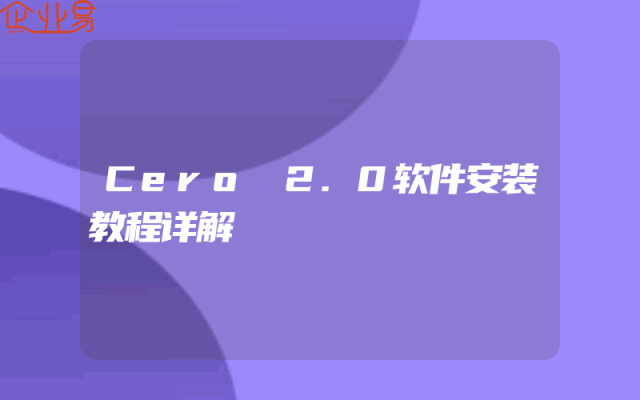 - Cero2.0软件安装教程详解一、前言Cero2.0是一款功能强大的软件,广泛应用于企业和个人用户。本文将为大家带来详细的安装教程,帮助您轻松完成软件的安装与使用。在开始之前,请确保您的计算机满足Cero2.0的硬件和软件要求。二、下载与安