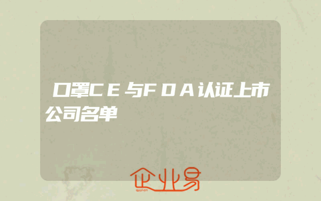 - 口罩CE与FDA认证上市公司名单:解析其重要性及其影响一、引言在全球健康危机的背景下,口罩成为了每个人生活中的必需品。而对于口罩企业来说,获得国际认证,特别是CE和FDA认证显得尤为重要。这些认证不仅代表着产品质量和效能的保障,更是企业信誉