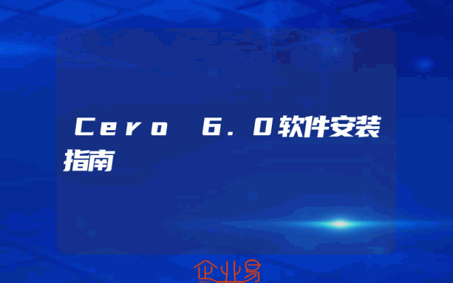 - Cero 6.0软件安装指南
