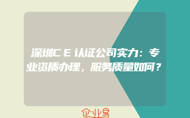 - 深圳CE认证公司实力:专业资质办理,服务质量如何?