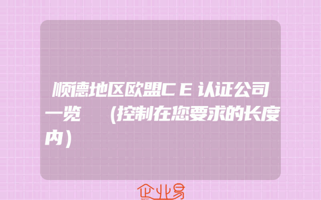 - 顺德地区欧盟CE认证公司一览 (控制在您要求的长度内)