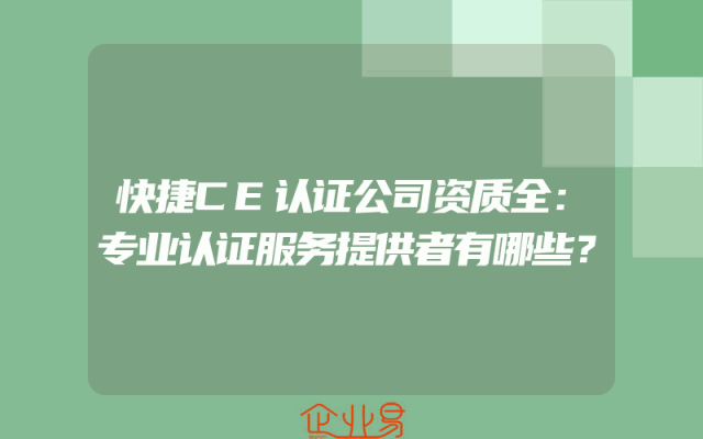 - 快捷CE认证公司资质全:专业认证服务提供者有哪些?
