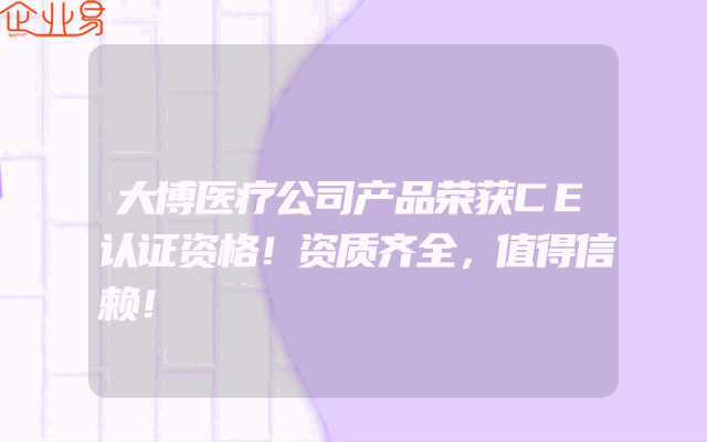 - 大博医疗公司产品荣获CE认证资格!资质齐全,值得信赖!