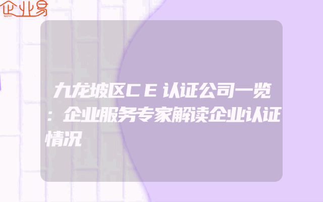 - 九龙坡区CE认证公司一览:企业服务专家解读企业认证情况