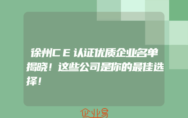 - 徐州CE认证优质企业名单揭晓!这些公司是你的最佳选择!