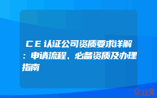 - CE认证公司资质要求详解:申请流程、必备资质及办理指南