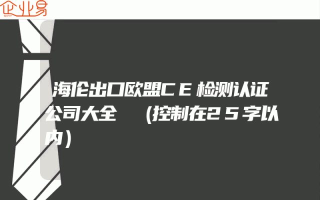 - 海伦出口欧盟CE检测认证公司大全 (控制在25字以内)