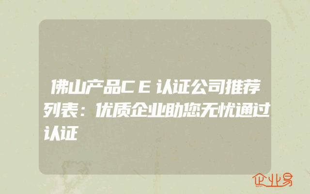 - 佛山产品CE认证公司推荐列表:优质企业助您无忧通过认证