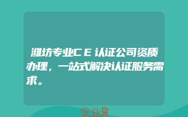 - 潍坊专业CE认证公司资质办理,一站式解决认证服务需求。