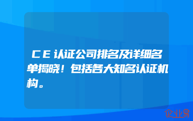 - CE认证公司排名及详细名单揭晓!包括各大知名认证机构。