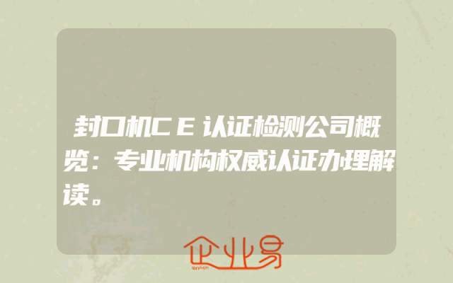 - 封口机CE认证检测公司概览:专业机构权威认证办理解读。