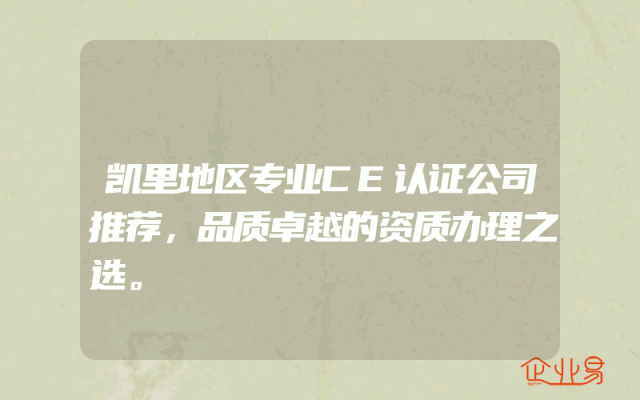- 凯里地区专业CE认证公司推荐,品质卓越的资质办理之选。