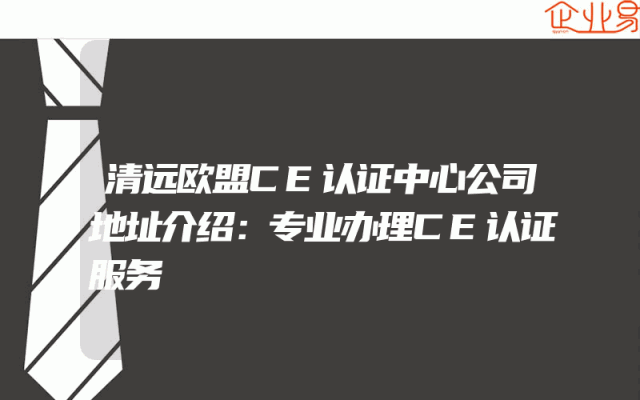 - 清远欧盟CE认证中心公司地址介绍:专业办理CE认证服务