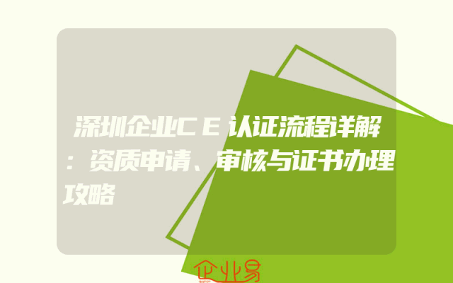 - 深圳企业CE认证流程详解:资质申请、审核与证书办理攻略