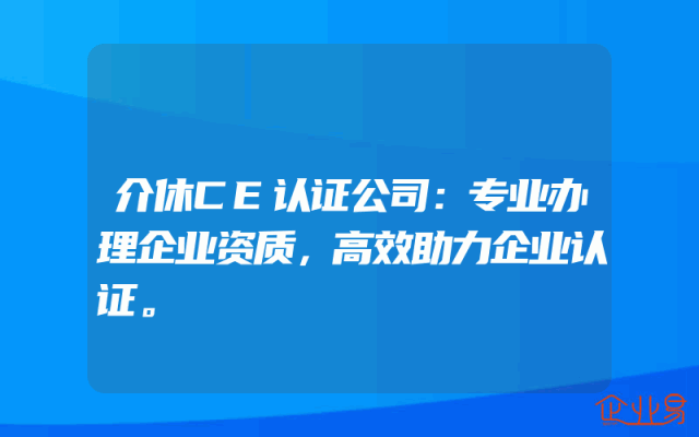 - 介休CE认证公司:专业办理企业资质,高效助力企业认证。