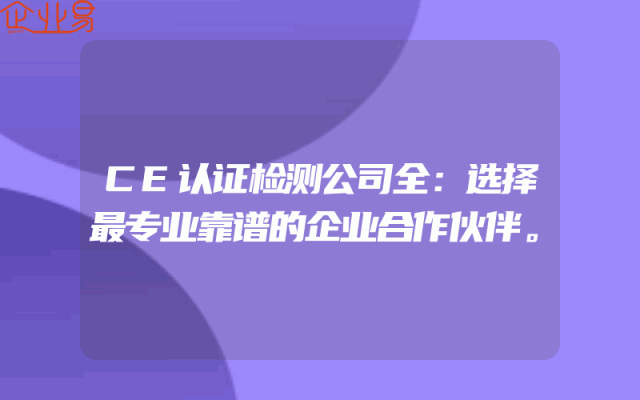 - CE认证检测公司全:选择最专业靠谱的企业合作伙伴。
