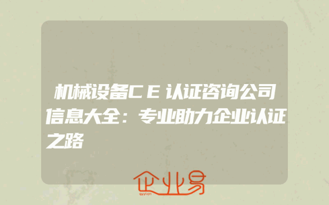 - 机械设备CE认证咨询公司信息大全:专业助力企业认证之路