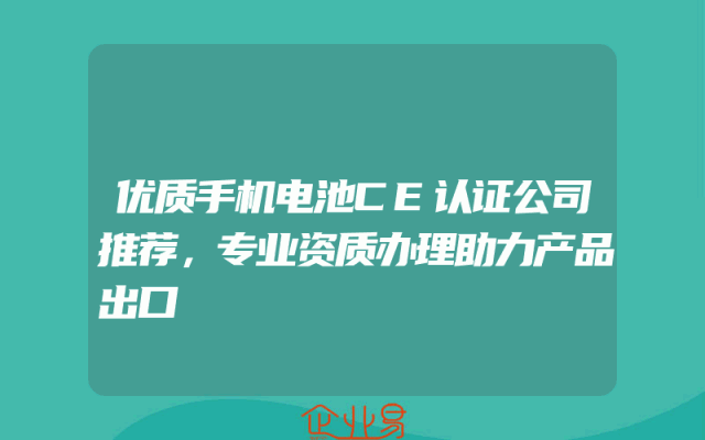 - 优质手机电池CE认证公司推荐,专业资质办理助力产品出口