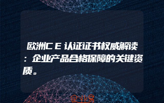 - 欧洲CE认证证书权威解读:企业产品合格保障的关键资质。