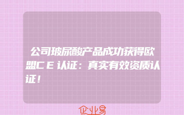 - 公司玻尿酸产品成功获得欧盟CE认证:真实有效资质认证!