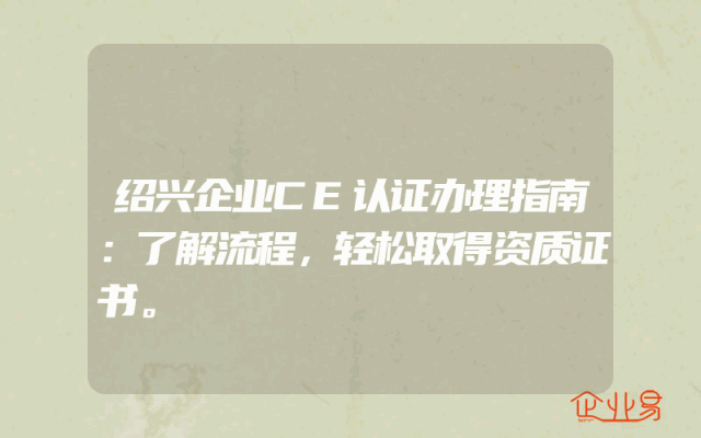 - 绍兴企业CE认证办理指南:了解流程,轻松取得资质证书。