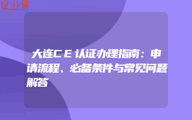 - 大连CE认证办理指南:申请流程、必备条件与常见问题解答