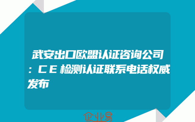 - 武安出口欧盟认证咨询公司:CE检测认证联系电话权威发布一、欧盟认证的重要性随着全球化进程的加速,欧盟市场已成为众多中国企业拓展海外市场的重要目标之一。在出口欧盟的过程中,产品必须通过相应的认证以确保其质量和安全性。其中,CE认证是欧盟对产品