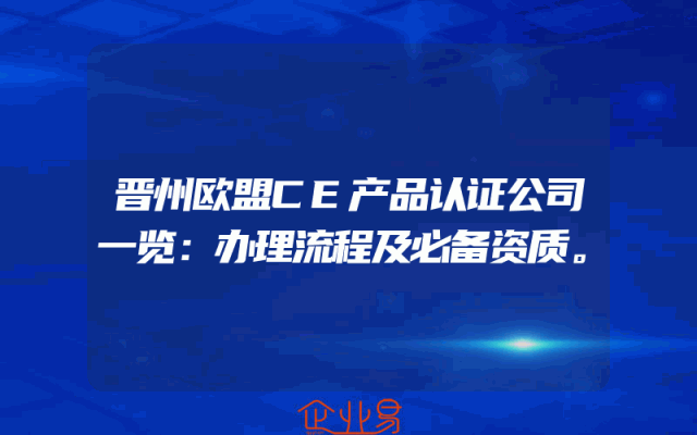 - 晋州欧盟CE产品认证公司一览:办理流程及必备资质。
