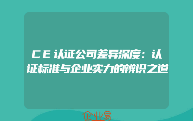 - CE认证公司差异深度:认证标准与企业实力的辨识之道