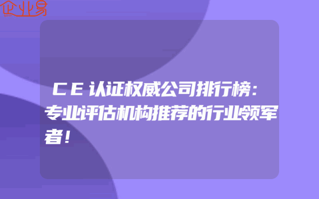 - CE认证权威公司排行榜:专业评估机构推荐的行业领军者!