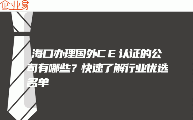 - 海口办理国外CE认证的公司有哪些?快速了解行业优选名单