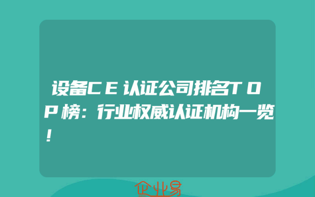 - 设备CE认证公司排名TOP榜:行业权威认证机构一览!
