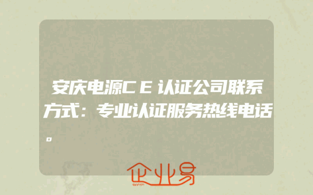 - 安庆电源CE认证公司联系方式:专业认证服务热线电话。