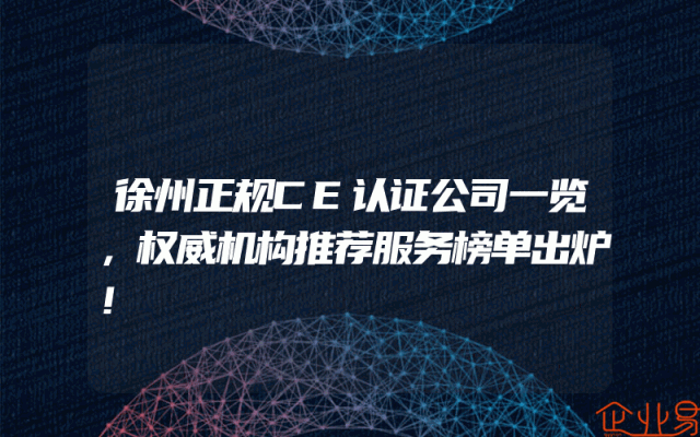 - 徐州正规CE认证公司一览,权威机构推荐服务榜单出炉!