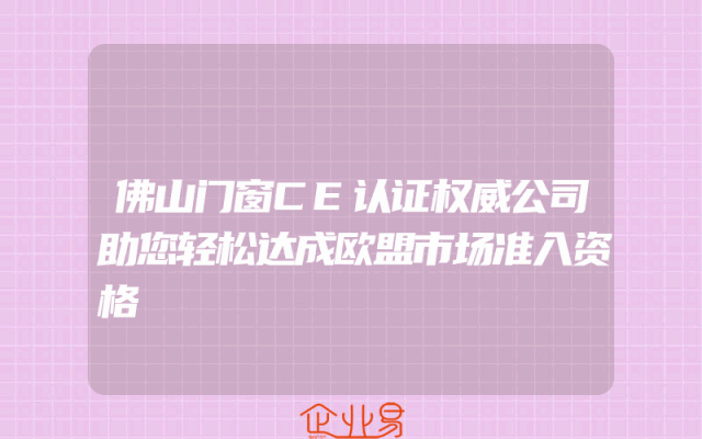 - 佛山门窗CE认证权威公司助您轻松达成欧盟市场准入资格