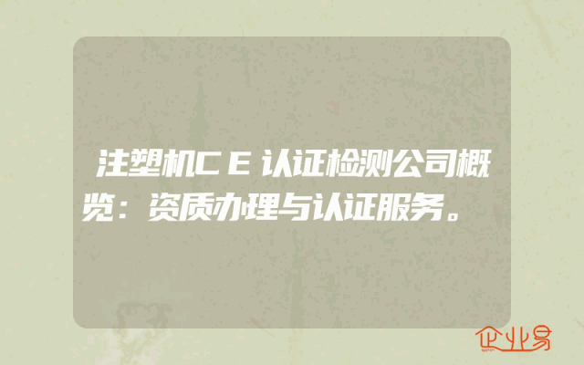 - 注塑机CE认证检测公司概览:资质办理与认证服务。