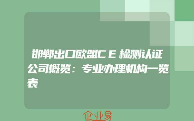 - 邯郸出口欧盟CE检测认证公司概览:专业办理机构一览表