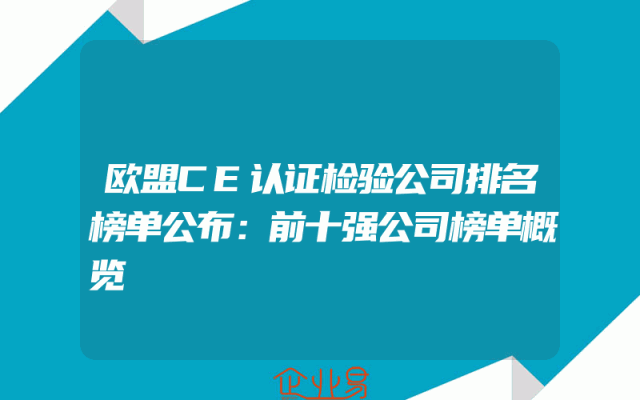 - 欧盟CE认证检验公司排名榜单公布:前十强公司榜单概览