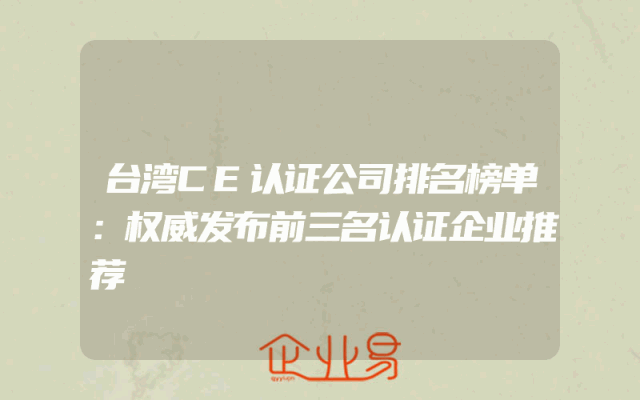 - 台湾CE认证公司排名榜单:权威发布前三名认证企业推荐